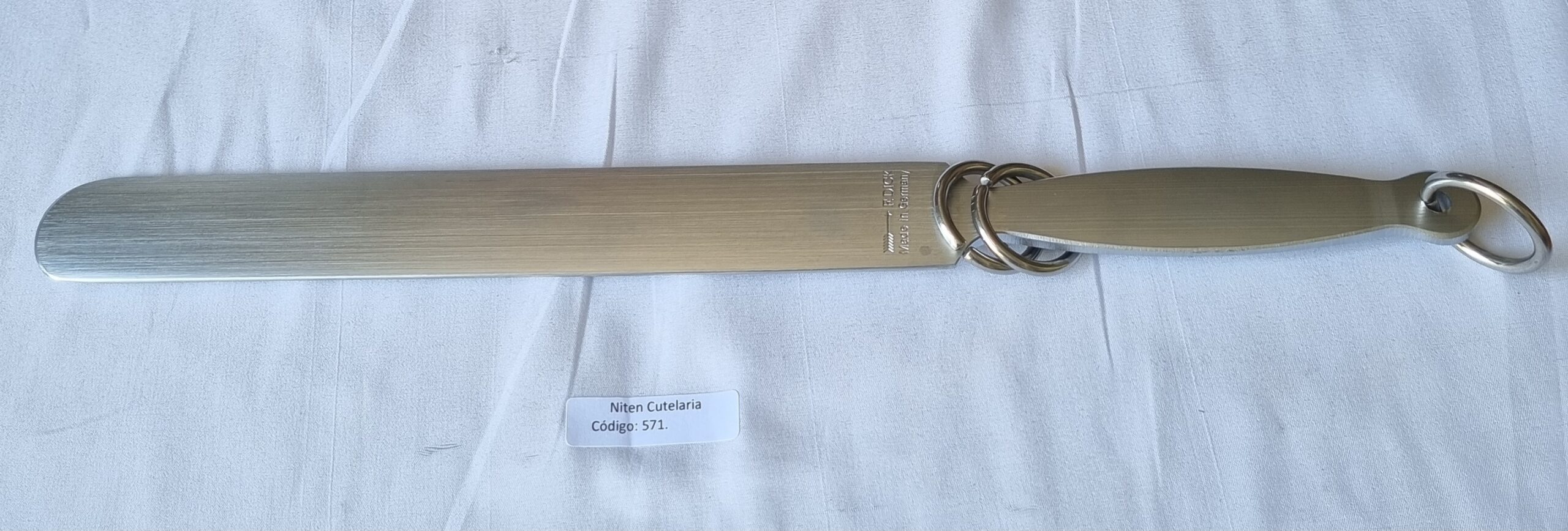 Medida lâmina: | 25 cm | medida dorso: | 1 mm | medida largura lâmina: | 3,4 cm | medida comprimento total: | 38 cm