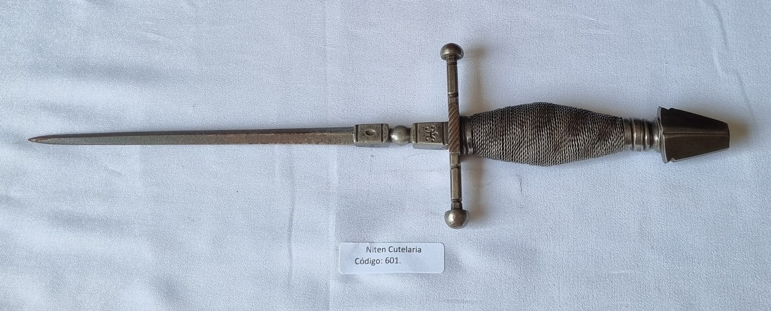 Material do cabo/descrição: | empunhadura em arame trancada | material bainha: | s/ bainha | tipo aço: | aco carbono | construção: | integral | observação: