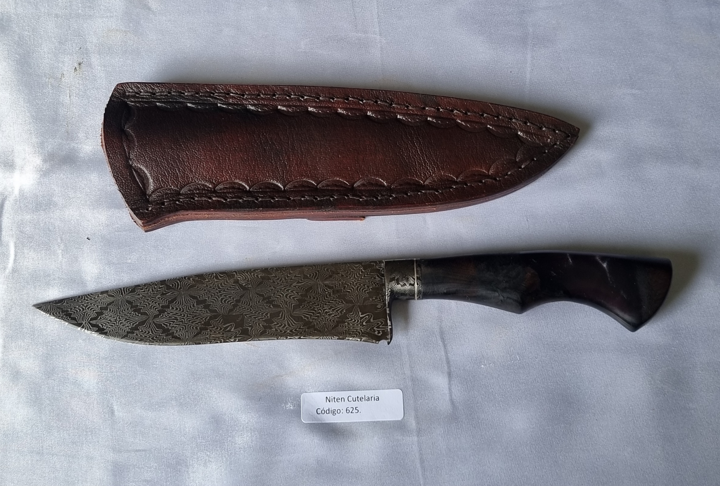 Material do cabo/descrição: | couro bovino | material bainha: | tipo aço: | damasco | construção: | integral | observação: